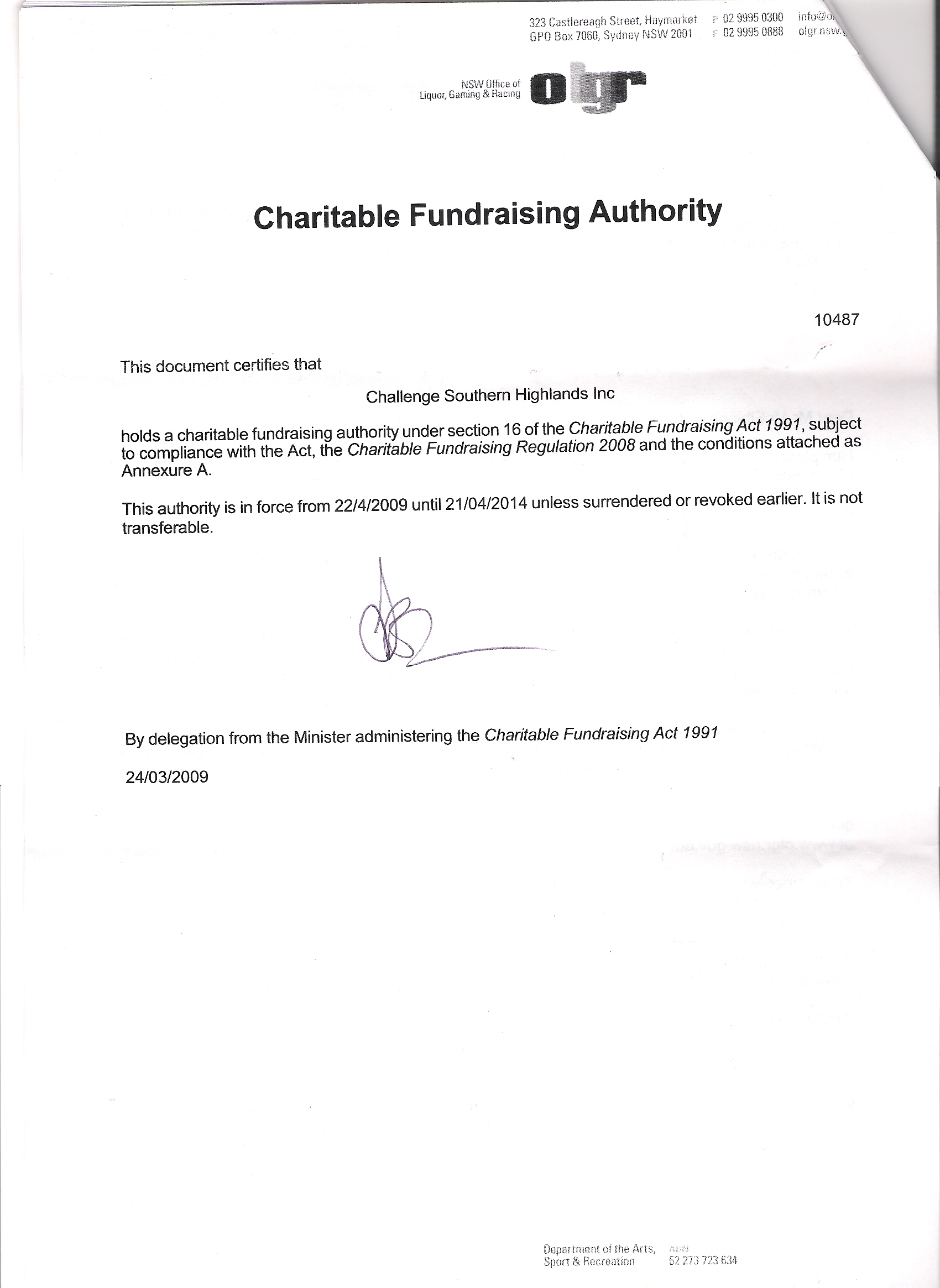 CHARITABLE FUNDRAISING AUTHORITY