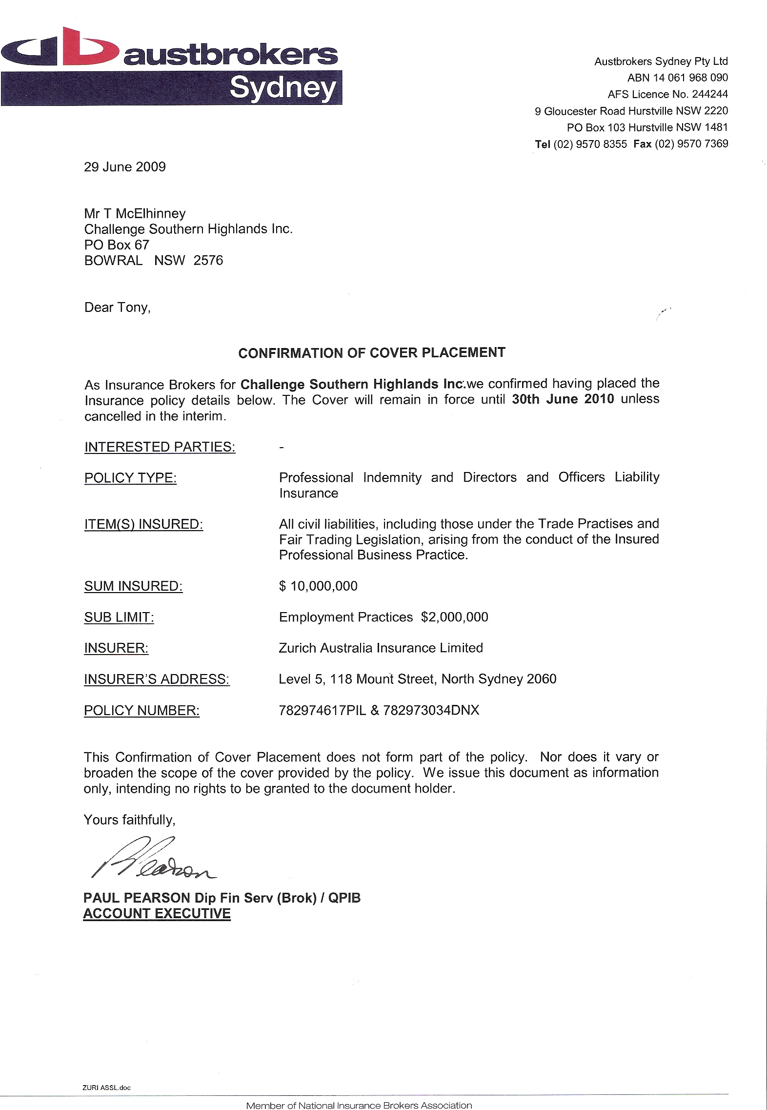 PROFESSIONAL INDEMNITY INSURANCE